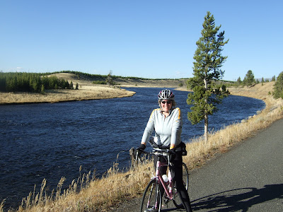And finally, the moment you've all been waiting for, YES, I did actually get on my bike today! After riding West Yellowstone to Old Faithful last year (in the snow), I thought it would be easier to go the other way around and drive to Old Faithful, then ride back to W.Y. I debated about whether or not this was cheating, but I figured that since I rode up Firehole Hill last year, I earned the right to ride down.